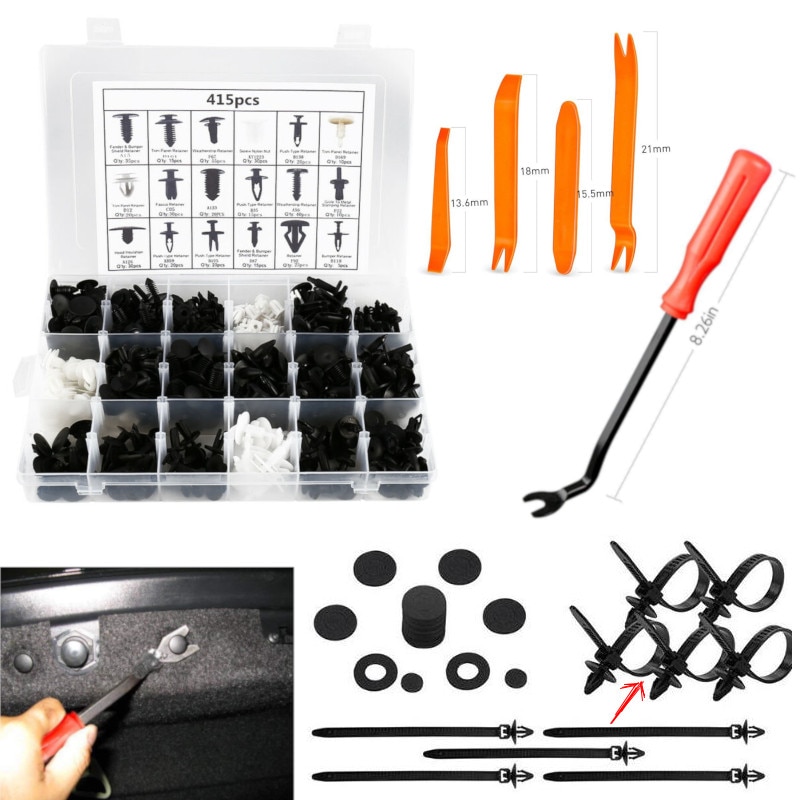 415 sztuk karoseria z tworzywa sztucznego pinezka łączniki nitowe wykończenia zacisk do formowania zestaw asortymentowy z śrubokręt