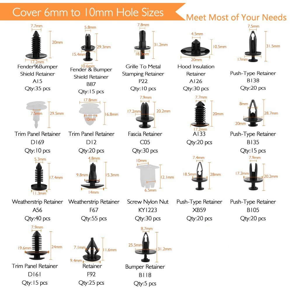 4 .. Zastępuje nity fabryczne pinezka w wielu markach pojazdów, takich jak B-M-W, Ford, forToyota, Honda, Nissan, Chrysler, Benz i au-di.