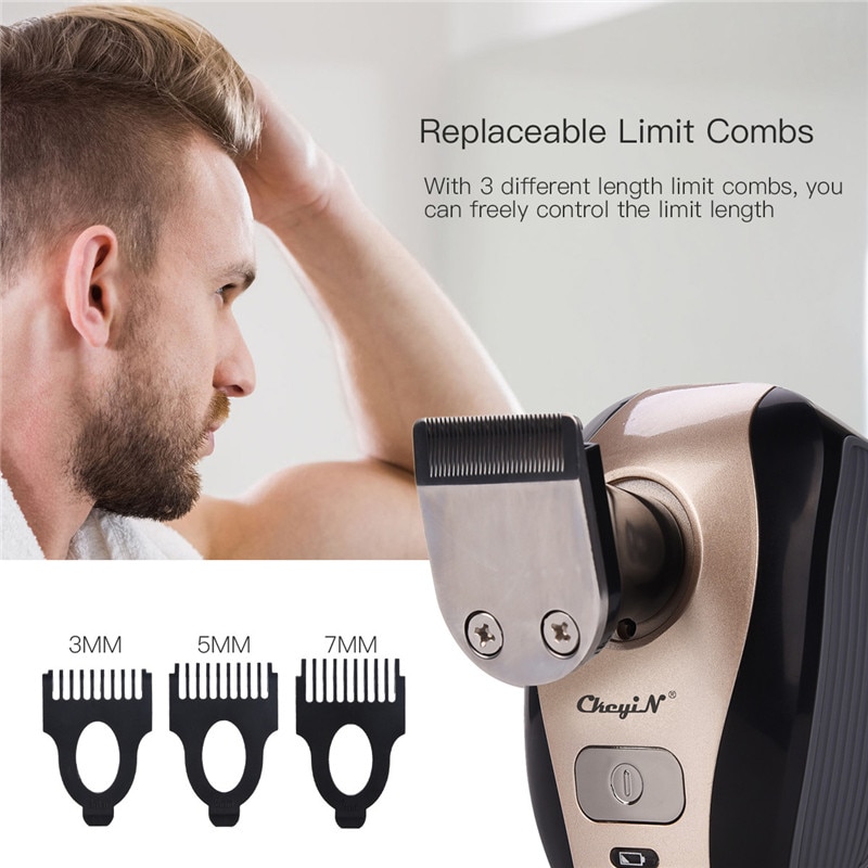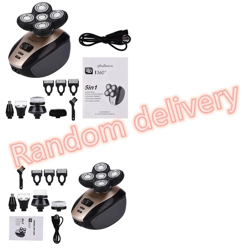 Funkcja: Pięć niezależnie ruchome głowice, inteligentne golenie. Może golić brodę, głowę, jedno urządzenie 2-w-1, ekonomiczne i praktyczne. Wodoodporny IPX7, całe ciało można prać i można je czyścić płynącą wodą. Wyposażony w wyskakujący trymer do bokobrodów, może być używany do przycinania wąsów i bokobrodów. Zestaw 5 w 1, oprócz głowicy maszynki do golenia, dostępna jest precyzyjna głowica trymera, głowica trymera nosa i uszu, miękka gąbka do twarzy i szczotka do czyszczenia twarzy. Precyzyjna głowica trymera: używaj razem z trzema różnymi grzebieniami granicznymi (3mm, 5mm, 7mm) do przycinania, łatwiej tworzyć spersonalizowaną fryzurę. Głowica trymera nosa i ucha: może być używana do usuwania nosa i uszu. Szczotka do czyszczenia twarzy: z bardzo drobnym włosiem usuwa olej i brud na skórze, nadaje się do złuszczania twarzy, oczyszczania. Miękka gąbka do twarzy: masaż przed goleniem, aby zmiękczyć zarost, aby ułatwić golenie. Ładowalna konstrukcja, wbudowana bateria 600mAh, po 5 godzinach pełne ładowanie, może być używana nieprzerwanie przez 45 minut. Uwaga: funkcja golenia głowy jest odpowiednia tylko dla tych, którzy często pozostają łysiną głową, ponieważ skóra głowy osób, które nie zawsze pozostają łysiną głową, jest stosunkowo delikatna, I nagle golenie może zranić skórę głowy. Specyfikacja: Materiał: ABS Bateria: 600mA Czas ładowania: 5 godzin Korzystanie z czasu: 45 minut Wodoodporny poziom: IPX7 Rozmiar: 9*6*8cm(L * W * H) Kolor: czarny + złoty Waga: 310g Zawartość opakowania: 1 x golarka elektryczna (z osłoną ochronną) 1 x kabel USB 1 x głowica trymera nosa i uszu (z osłoną ochronną) 1 x precyzyjny głowica trymera 1 x miękka gąbka szczotka 1 x szczotka do czyszczenia twarzy (z osłoną ochronną) 3 x grzebień graniczny (3,5,7mm) 1 x szczotka do czyszczenia 1 x instrukcja obsługi (angielski/chiński) Opakowanie w pudełku