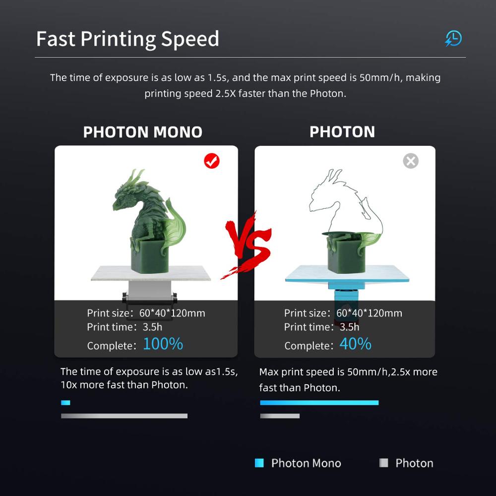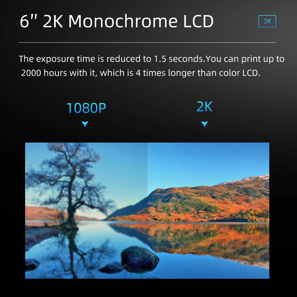 Szybkie drukowanie: dzięki ekranowi monochromatycznemu drukarka może zużywać mniej energii podczas drukowania szybciej. Czas ekspozycji zmniejsza się do 1.5 sekundy. Znacznie dłuższa żywotność: możesz drukować do 2000 godzin, co jest 4 razy dłuższe niż kolorowy wyświetlacz LCD.