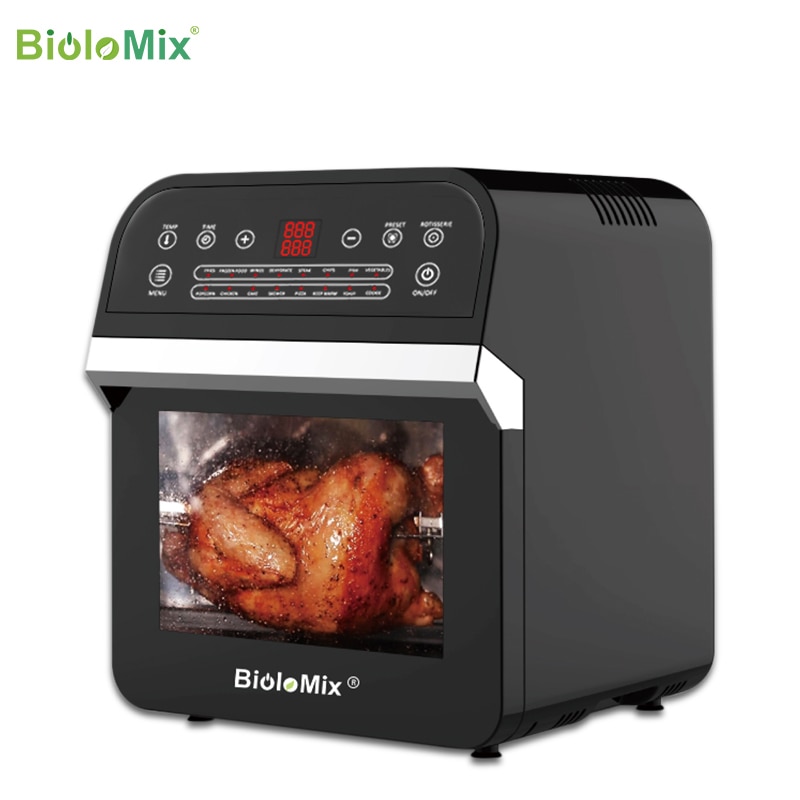 BioloMix wprowadzenie 12 litr powietrza frytkownica piekarnik. Został on zaprojektowany z wysokiej jakości wnętrza ze stali nierdzewnej i jest wyposażony w 8 akcesoria (3 jako opcjonalne), aby zmaksymalizować twoje gotowanie. Powietrza smażyć, pieczeń, rotisserie, piec, odwodnić, itp! Z łatwością gotować smak smaczne, zdrowe jedzenie bez kropli oleju w kuchni. Temperatura ogrzewania może być kontrolowane i dostosowane, które dzięki czemu można wybrać i kontroli optymalna temperatura dla różnych rodzajów żywności. Rozkoszuj się do gotowania i zrobić pyszne jedzenie dla rodziny.