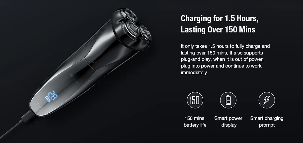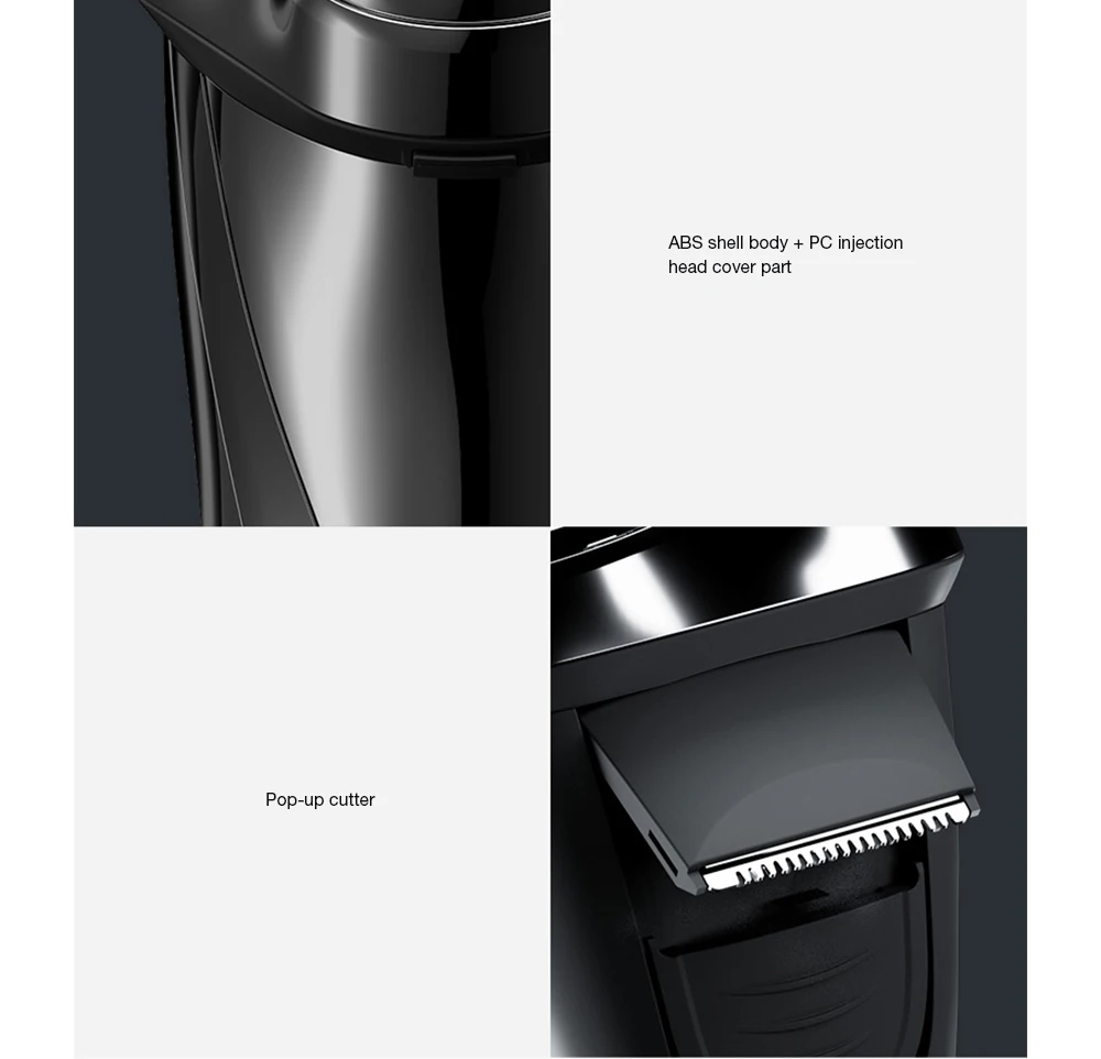 ● Inteligentny projekt wyświetlacza. ● Wodoodporny IPX7, zmywalny korpus, podwójne zastosowanie na mokro i na sucho. ● Niezależna głowica tnąca 3D, 1/3 obszar golenia więcej niż zwykła golarka z podwójną głowicą. ● Ultra-cienka siatka z podwójnym pierścieniem zwiększa powierzchnię styku między siatką a powierzchnią, poprawiając wydajność golenia. ● Automatyczne ostrzejsze noże są wykonane ze stali nierdzewnej i są trwałe. ● Potężna moc 5W, niski poziom hałasu 67dB. ● Inteligentna broda zapobiegająca szczypaniu, zapobiega przeciążeniu silnika. ● Inteligentny zamek, jeden przycisk blokady zapobiega przypadkowemu otwarciu. ● Ładowanie przez 1.5 godziny, trwające ponad 150 minut. ● Interfejs ładowania USB typu C.