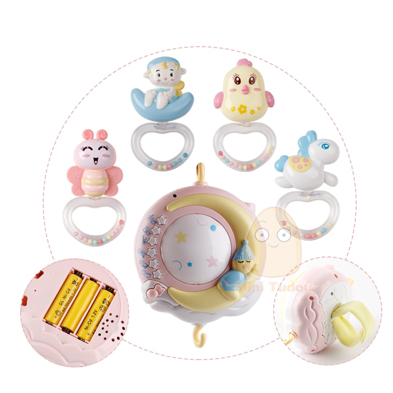 Stand-along Music Box & grzechotki: pozytywka i zawieszka można zabrać ze sobą. Nocne światło, to uspokajające nocne światło, gdy nadszedł czas na łóżko.