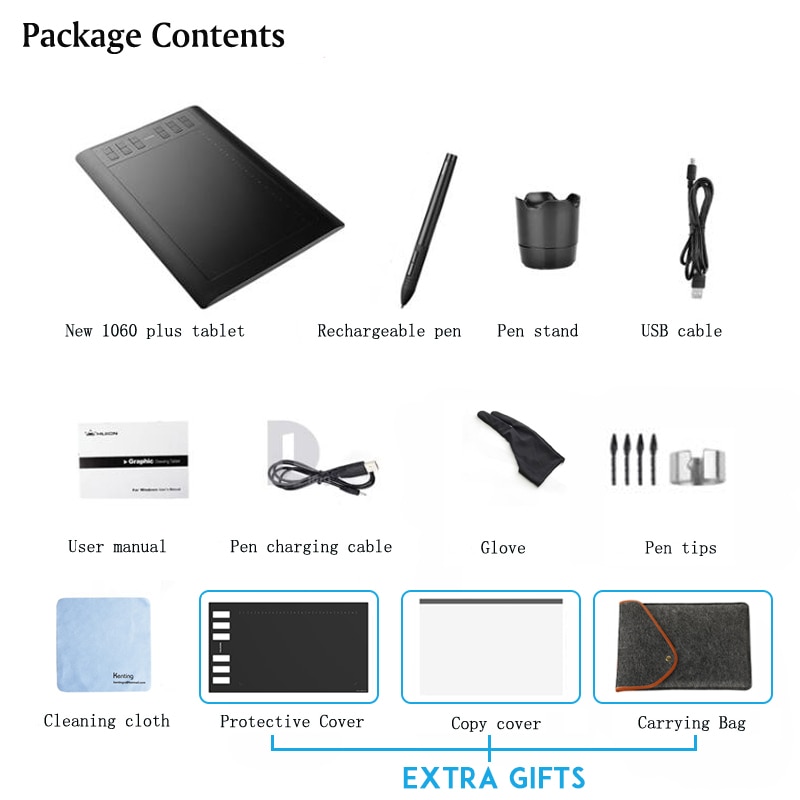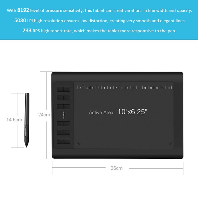 • Nowy wygląd: 10 “x 6.25” w obszarze roboczym, nowa powierzchnia pełnego obszaru i wąska krawędź sprawiają, że nowy 1060PLUS wygląda na większy. Uchwyt na pióro po prawej stronie do przenoszenia pióra z tabletem graficznym.