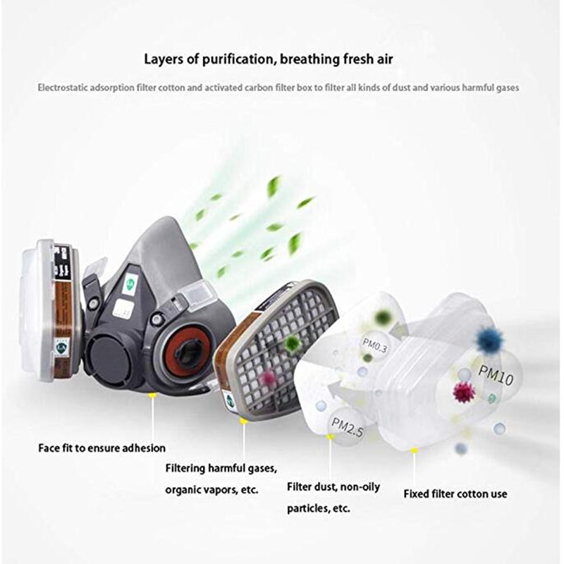 PM005-Przeciwpyłowa maska gazowa na całą twarz, respirator do malowania natryskowego, rozpylania pestycydów, chroni przed dymem z płonących chemikaliów, ochrona przeciwpożarowa, maska na pół twarzy, 1 zestaw