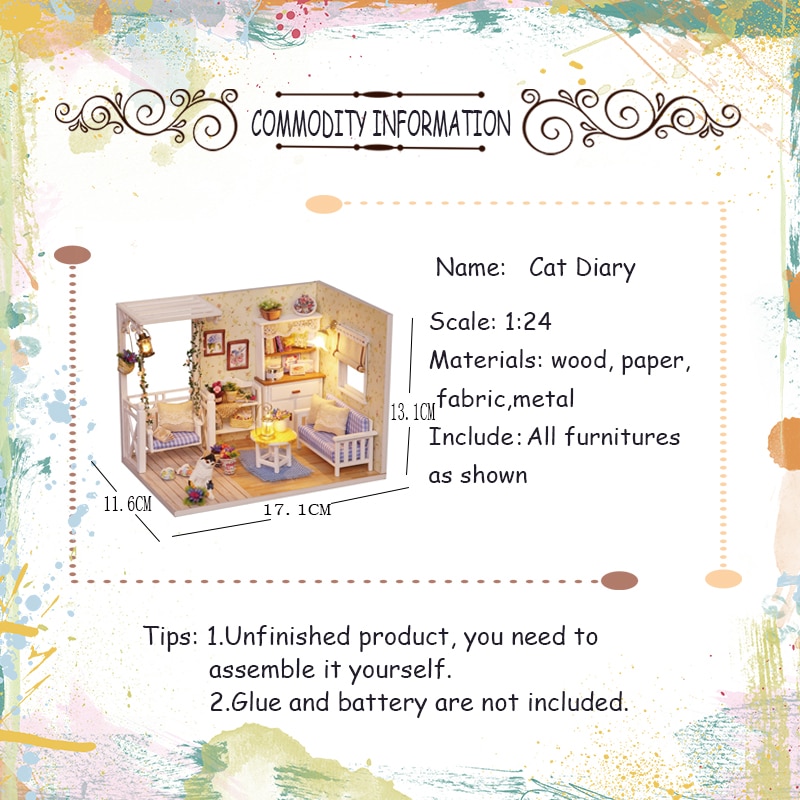 Meble domowe dla lalek Diy miniaturowe 3D drewniane miniatury zabawki do domku dla lalek na prezenty urodzinowe dla dzieci Casa pamiętnik z kotkiem H013 – MAZARSKI
