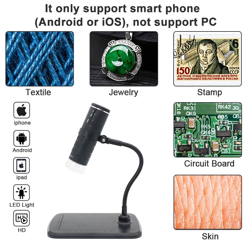 Mikroskop cyfrowy 1000X HD 1080P LED USB WiFi mikroskop mikroskop na telefon komórkowy ax – MAZARSKI