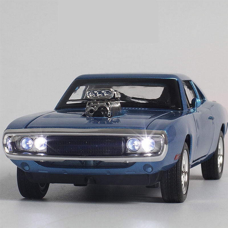 1/32 Diecasts & pojazdy zabawkowe szybki i wściekły motyw z autem Dodge Model z dźwiękiem i światłem kolekcja samochody zabawkowe dla chłopca prezent dla dzieci