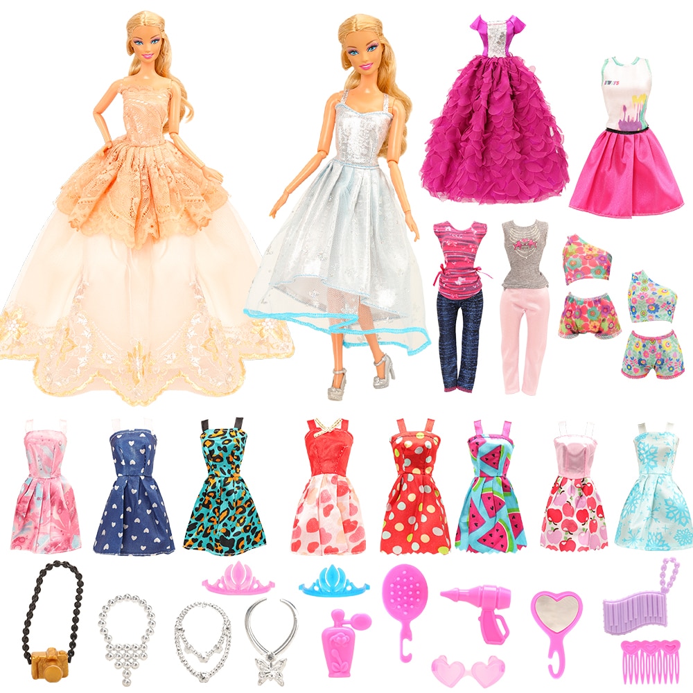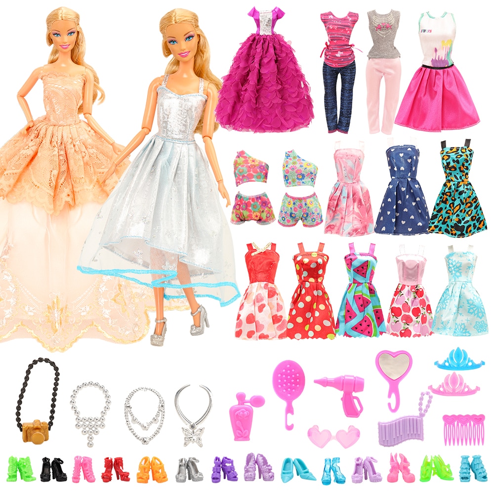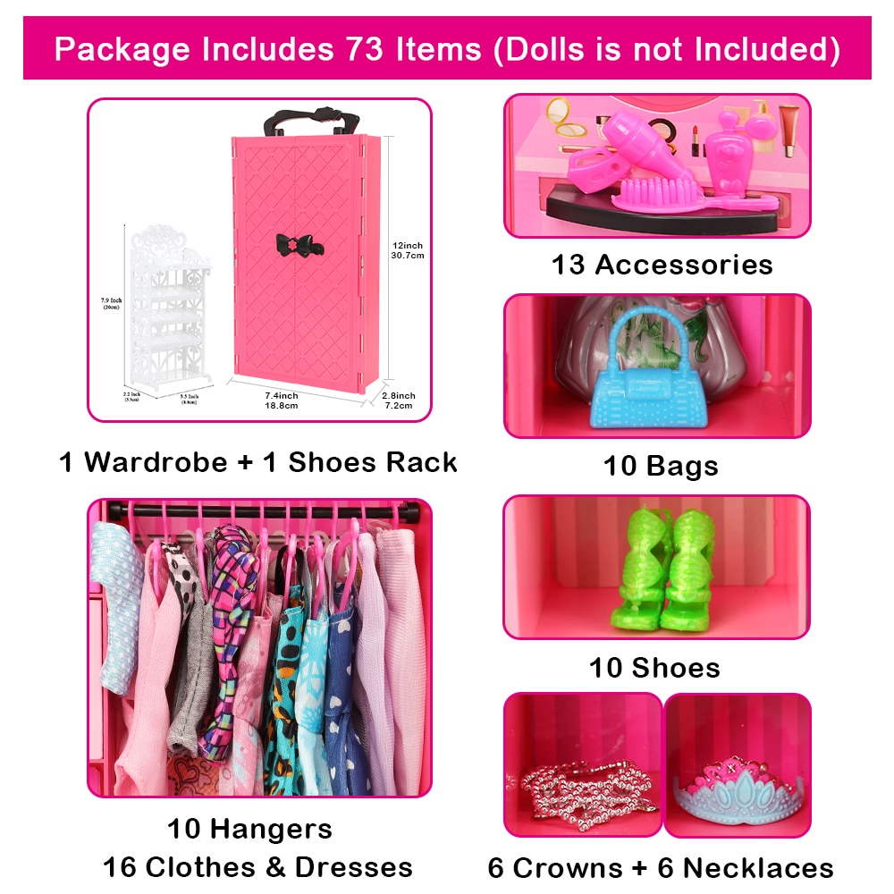 Modne meble do domku dla lalek 73 przedmioty/zestaw = 1 szafa + 72 akcesoria dla lalek lalki ubrania sukienki korony naszyjnik buty dla Barbie (73 Items) – MAZARSKI