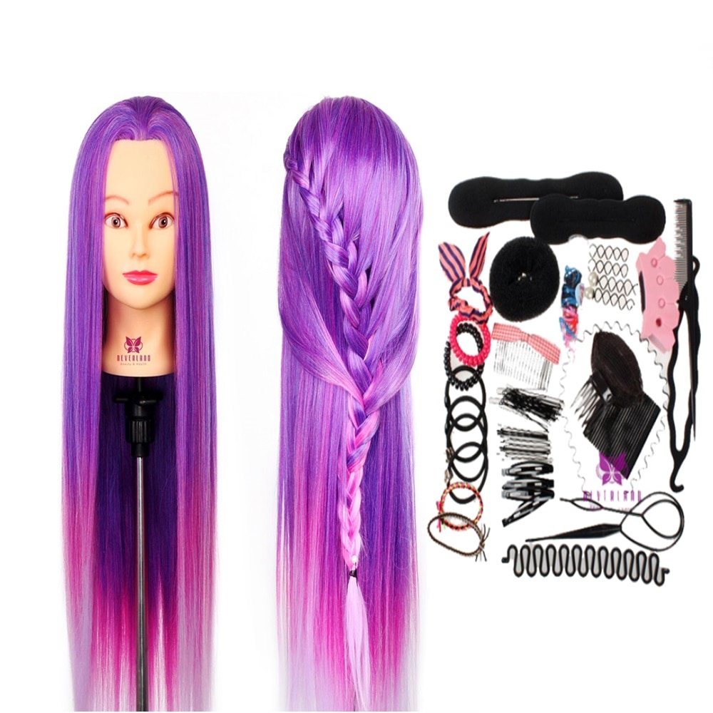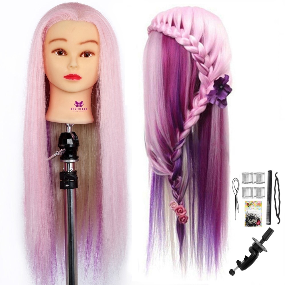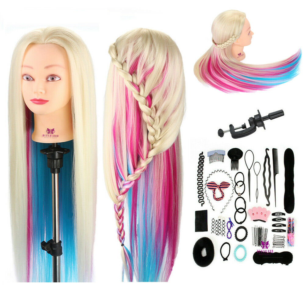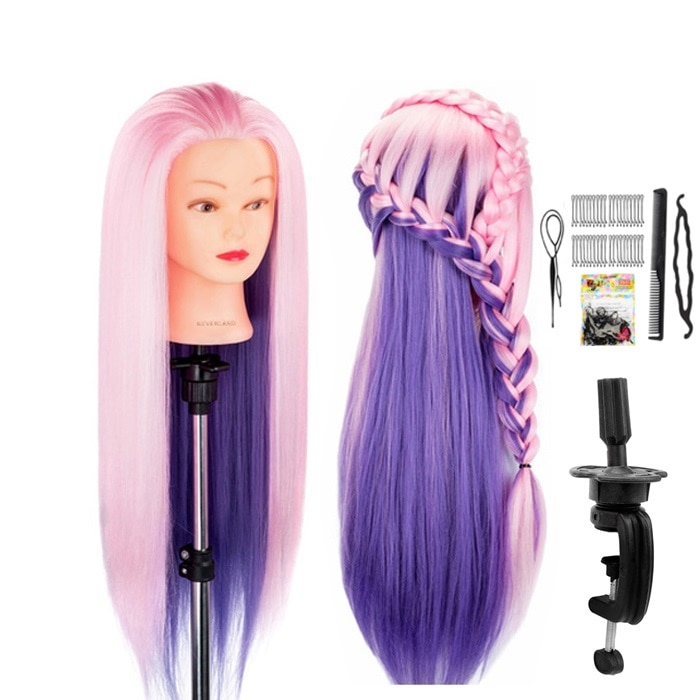 Neverland 29 Cal kolorowe włosy syntetyczne głowa manekina do fryzur głowa fryzjerska treningowa manekin lalka zacisk akcesoria