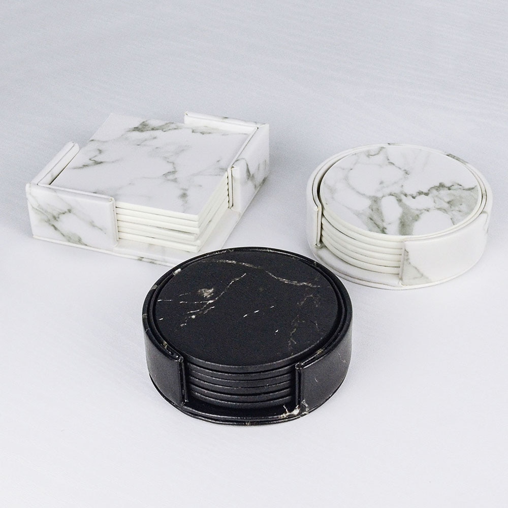 Creative PU Leather Marble Coaster Drink Coffee Cup Mat Tea Pad