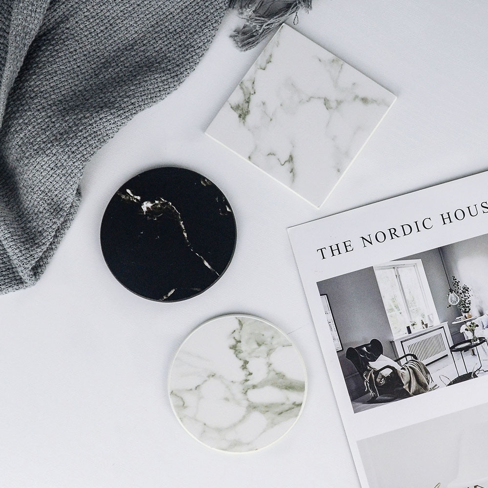 PODKŁADKI PODSTAWKI MARMUR SKÓRA POD KUBEK 6 sztuk