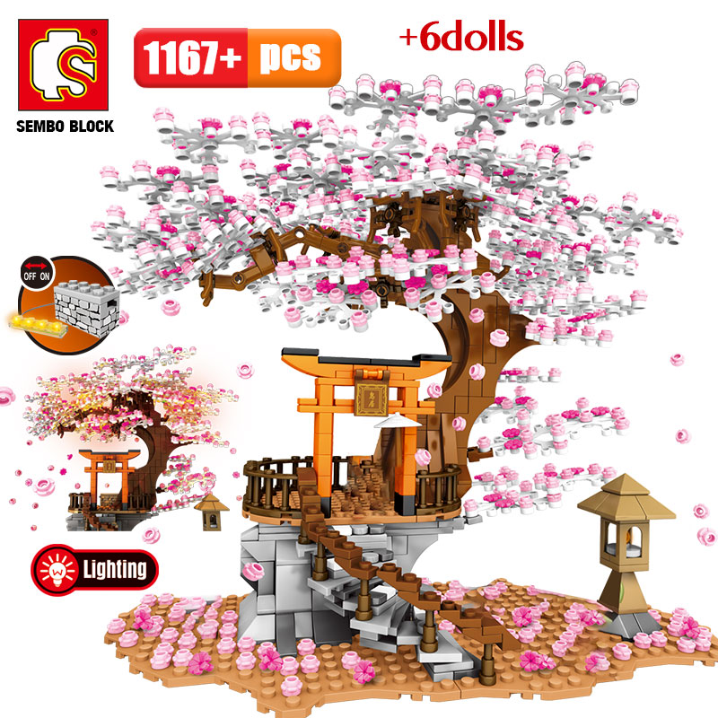 SEMBO ulica miasta widok pomysł Sakura Inari świątynia cegły przyjaciele kwiat wiśni Technic Creator dom drzewo klocki