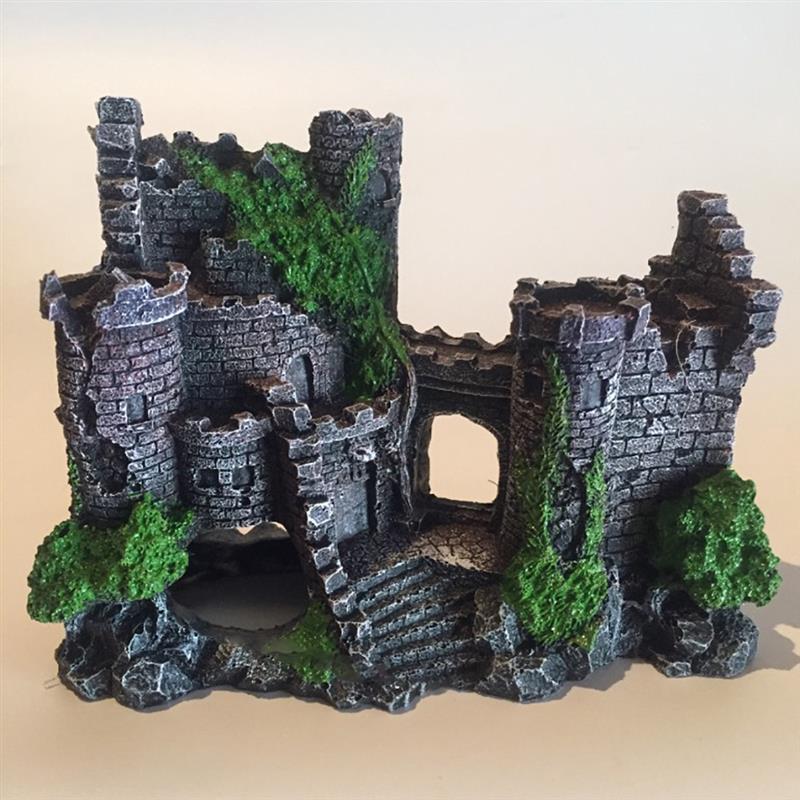 Sztuczna żywica dekoracja do akwarium stary zamek krajobraz Rock dekoracyjna ozdoba do akwarium akcesoria Home Decor