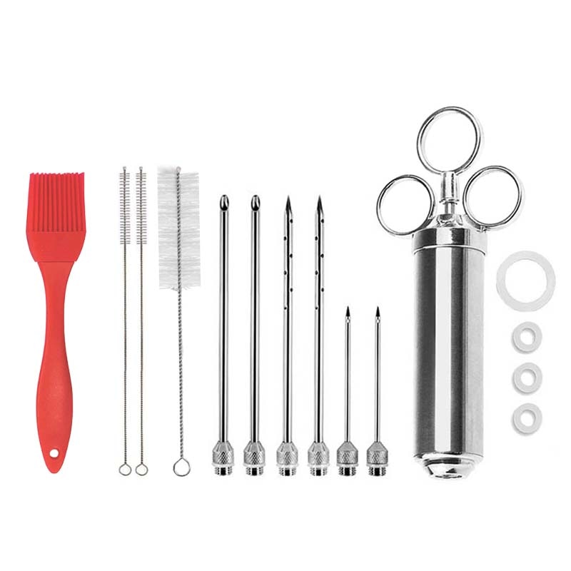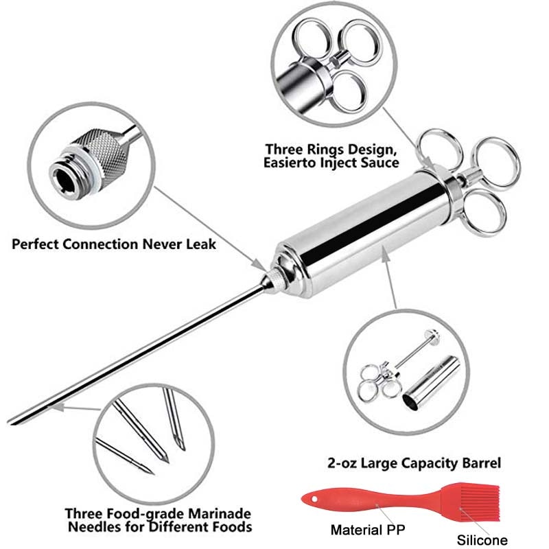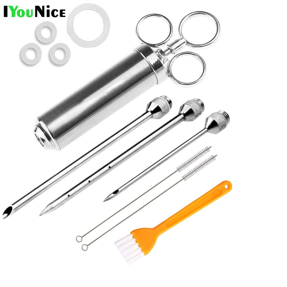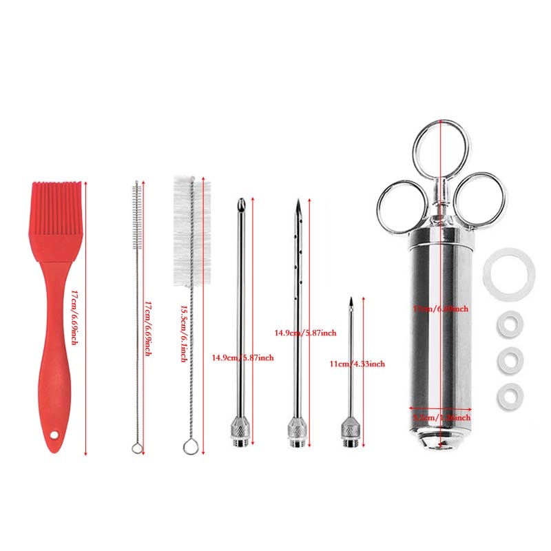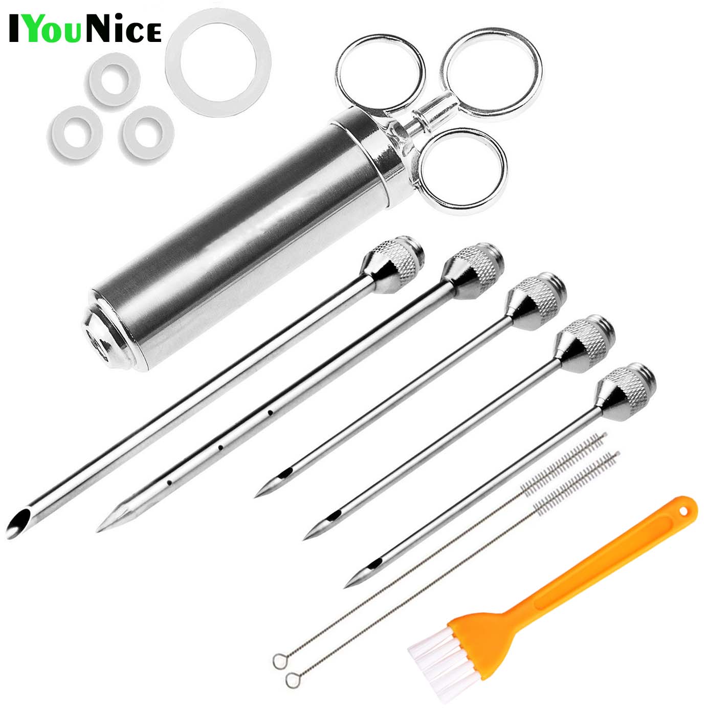 IYouNice 5 igły 2 uncja wtryskiwacz mięsa strzykawka drób marynata smak wtryskiwacz mięso przyprawy wtryskiwacze zestaw grill narzędzia kuchenne