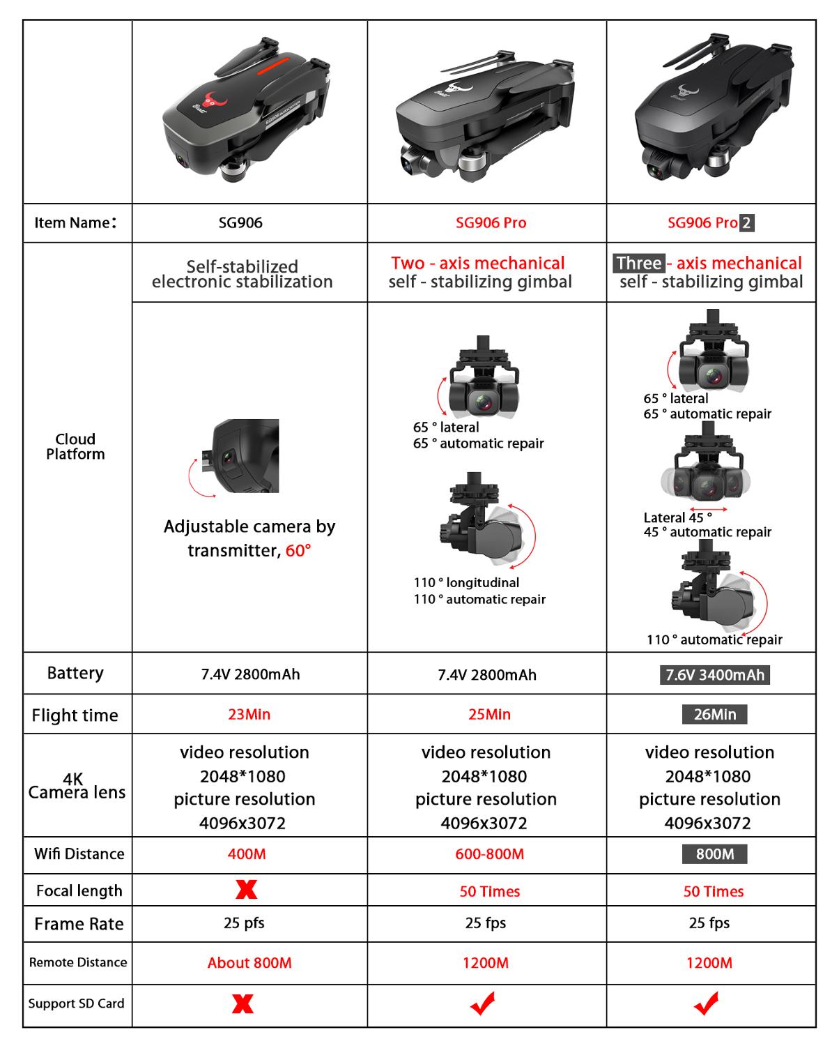 Pierwsze  opcje to wersja SG906, wersja sg906 pro. Ostatnie opcji to wersja sg906 pro 2,